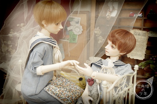 今回のポージングは、寝巻の少年の風景らしく。