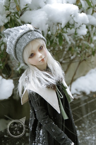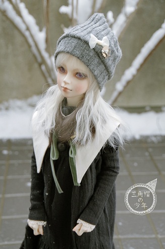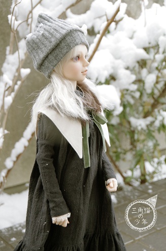 冬らしくなるよう、ニット帽と毛皮襟巻を足してみました。